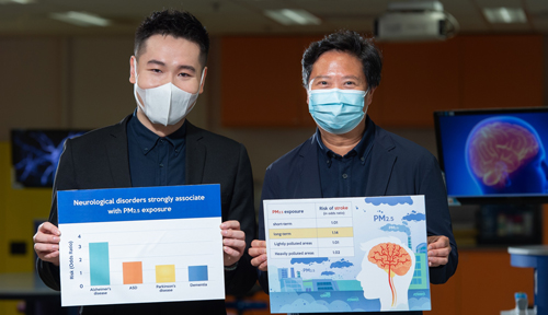 Professor Yung (right) and Dr. Fu Pengfei, Postdoctoral Research Fellow of the Department of Biology of HKBU, find a strong association between PM2.5 and a wide range of neurological disorders